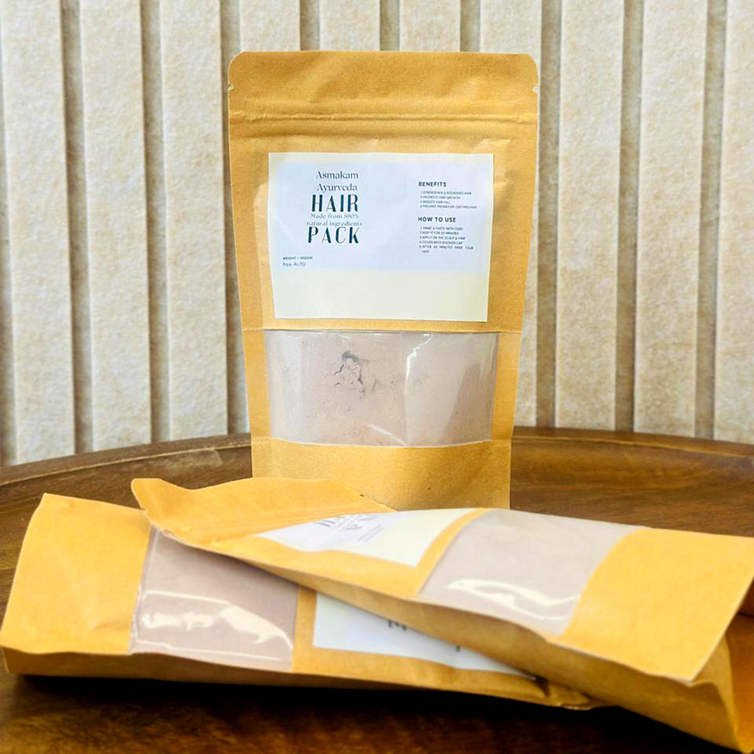 Herbal hair pack strengthens roots, reduces hair fall, and nourishes the scalp with natural, chemical-free ingredients.